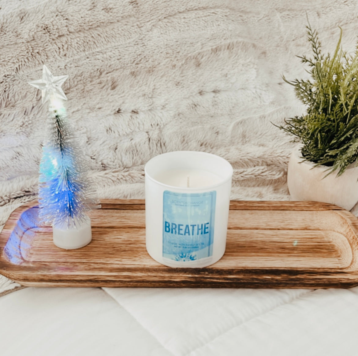 Our "Breathe" candle, an elegant fusion of sweet peppermint and earthy eucalyptus, creating a refreshing, spa-like experience. Its luxurious aroma instantly elevates any space, making it perfect for entryways, hallways, and living rooms. This scent beckons guests in and invites them to stay, enveloping your home in a calming, upscale atmosphere. ✨