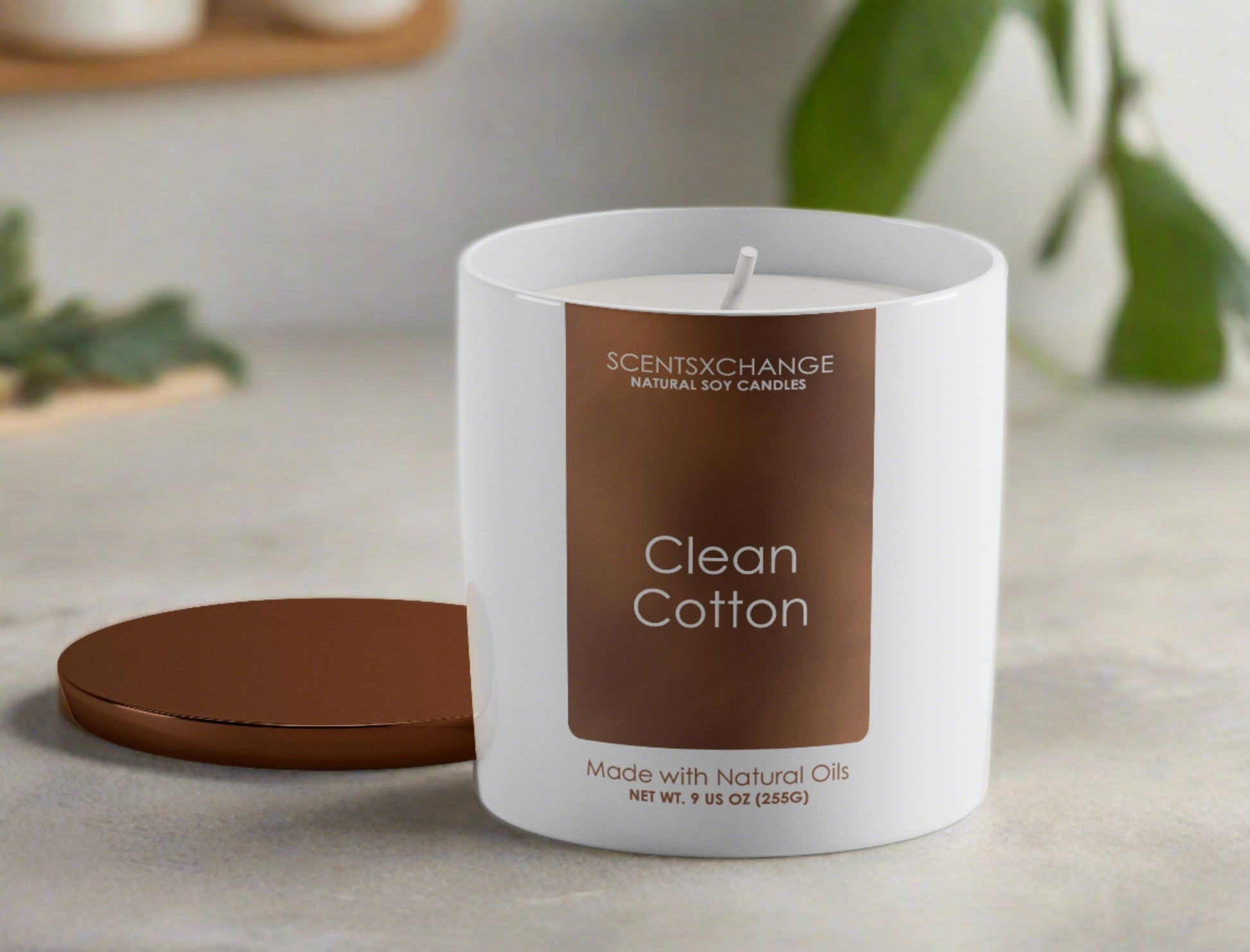 Împrospătează-ți casa cu lumânarea noastră Clean Cotton. Surprinde aroma nostalgică a foilor uscate într-o zi însorită, răcoroasă.Nota de top a lenjeriei crocante duce la un buchet inocent de lavandă proaspătă, iasomie înflorită, petală de trandafir și crin alb în acest parfum fantastic.