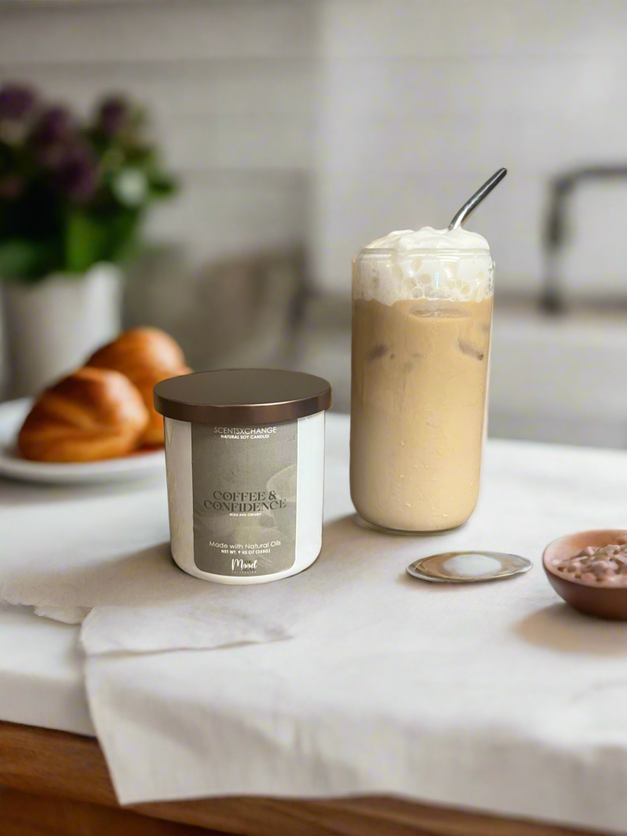 Start your day with bold energy and unstoppable vibes. Coffee and Confidence is your morning mantra in a jar; a comforting, energizing blend that smells like your favorite coffee shop, but better. This scent opens with the rich aroma of freshly ground beans, softens into notes of warm caramel and sugar, and finishes with a creamy swirl of vanilla and milk. It’s the kind of scent that sparks inspiration, sharpens focus, and fills your space with that “I’ve got this” feeling.