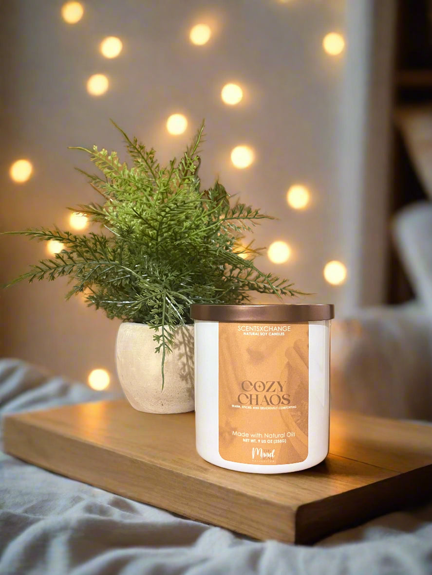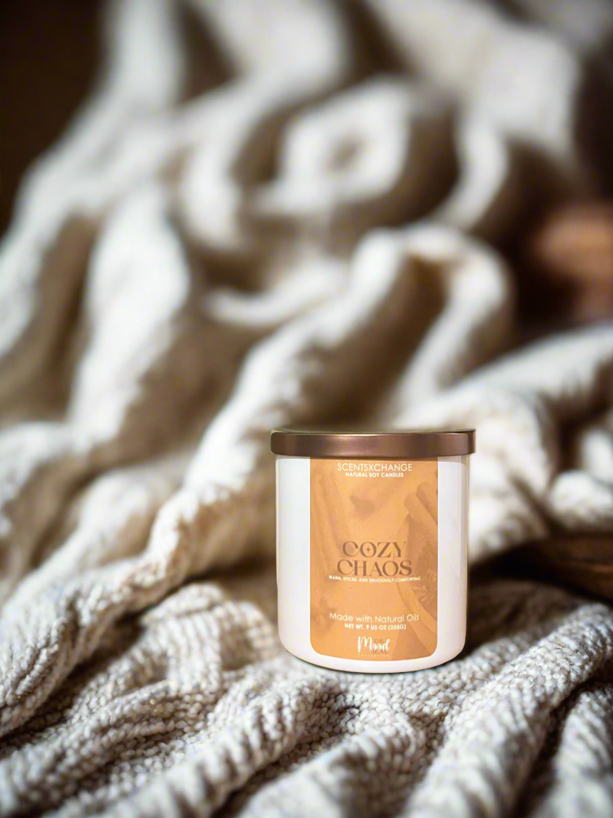 Sometimes life feels like a whirlwind—but somehow, it's still beautiful. Cozy Chaos is that exact mood captured in a candle. It’s a luxurious, year-round fragrance that brings together juicy plum and bright citrus for a sweet start, followed by a heart of sultry amber and jasmine. Finally, it settles into a warm, grounding base of musk and amyris.